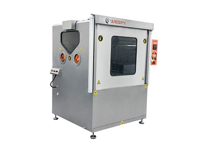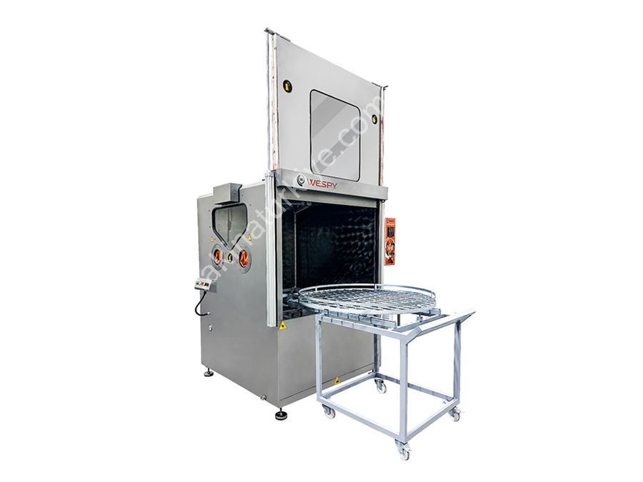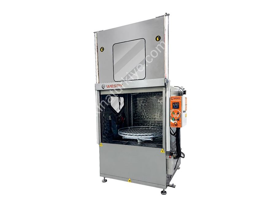 Wespy DHS-1500 Pnömatik Önden Kapaklı Otomatik ve Manuel Döner Sepetli Yıkama Makinesi Paslanmaz döner bir platform üzerine kızaklı sistem ile yerleştirilen sepet üzerine yıkanacak olan parçalar yerleştirilmek üzere kapalı bir kabinde yüksek basınçlı deterjanla su ile dönerli sepetli yıkamaya tabi tutulur. Parça yapısına ve kirlilik oranına göre zaman ayarlı basınçlı su nozulları vasıtasıyla kirli yüzeylerdeki yağ, talaş, kir, atıkları değişik açılardan temizlemek üzere yıkama işlemi yapılır. Devir daim sistemi ile su filtre edilmek suretiyle, su, deterjan, elektrik ve zaman (iş gücü) tüketimini en az sarfiyatla parça yıkama tasarlanmıştır. Manuel olarak da yıkanacak parçaları deterjanlı su ile devirdaim işlemi ile yıkanabilir.
