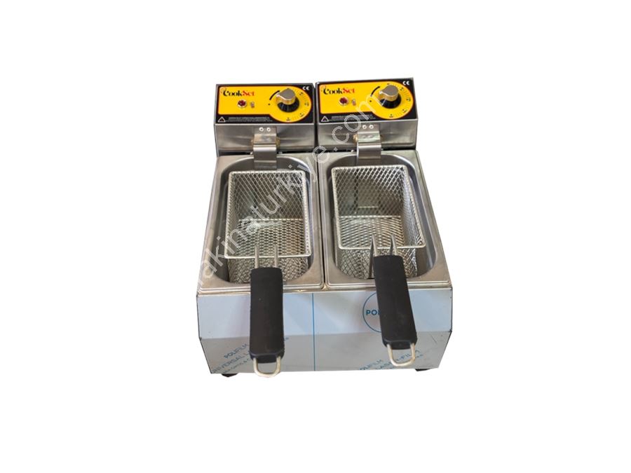 3+3 (6 Lt) Elektrikli Profesyonel Endüstriyel Fritöz - Profesyonel kullanıma uygun. - Yüksek hassasiyetli termostat. - Ayrıca ikinci termostata sahiptir, yangın emniyeti sağlar. - Çelik gastronom. - Çıkarılabilir çelik yağ tankı. - Çıkarılabilir tutacaklı sepet. - Paslanmaz çelik gövde. - Çelik kapak. Ürün Ölçüleri: 375x620x355 mm Ağırlık: 8 kg Kapasite: 3+3 (6) lt Güç: 5000 W
