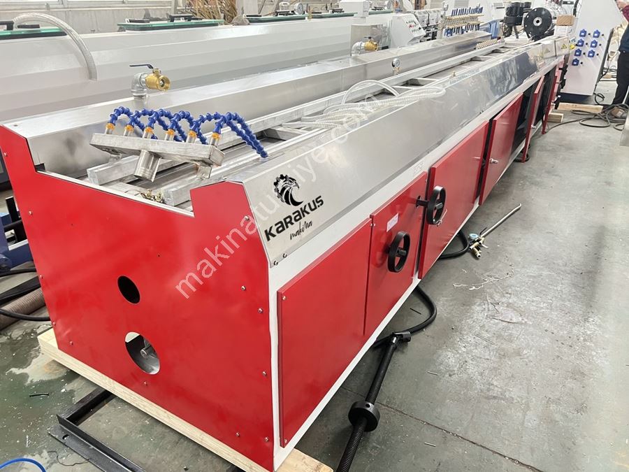 When we ask what Plastic Profile PVC Machine is and what are its working principles, the working principle of these machines is to transfer power from the main motor to the gearbox and from there to the screw barrel, and the particle called the screw rotates 360 degrees around its own axis, carrying the material from the hopper to the screw by melting it with the resistors located on top of the barrel. When the material reaches the head, it will take the shape of the head in a hot way. After the hot material exits the head, it will enter the vacuum calibration table. Here, it takes the desired shape through vacuum. There is water circulation inside the material in the calibration mold, and the product will be cooled. After the product exits the calibration, it has reached the desired size and is cooled.