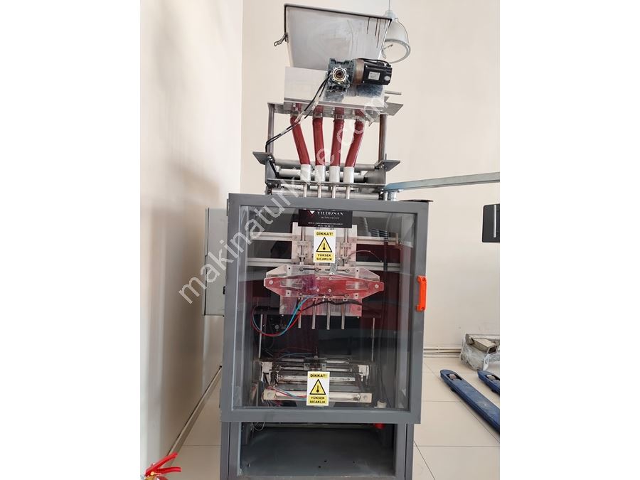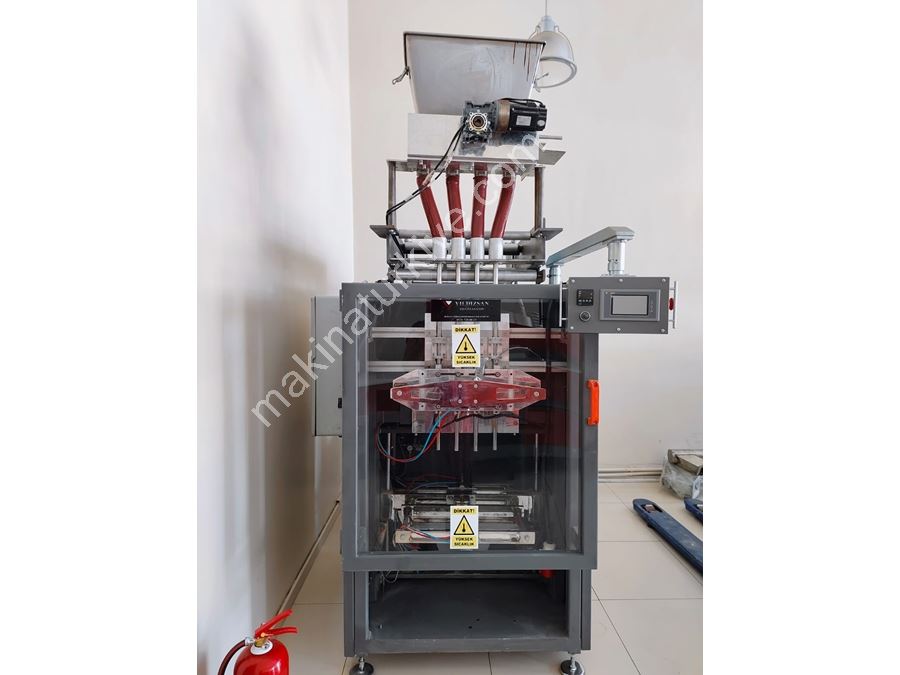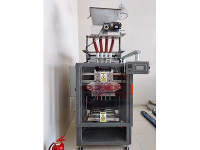 3-in-1 Coffee Filling Packaging Machine Features Precision Filling System: Adjusts coffee, milk powder, and sugar ratios precisely in each package. High Production Capacity: Produces thousands of single-use packages per hour. Hygienic and Durable Design: Stainless steel body, compliant with food safety standards. Flexible Package Sizes: Compatible with different weights and packaging types. Automatic Cutting and Sealing: High-temperature sealing system for leak-proof and long-lasting packages. Usage Areas Food Industry: 3-in-1 coffee producers. Hotels, cafes, and restaurants: Single-use coffee service. Retail and supermarkets: Packaged coffee sales. Advantages Maintains product standard and prevents weight errors. Increases production efficiency by shortening packaging time. Enhances consumer satisfaction with practical and hygienic packaging.