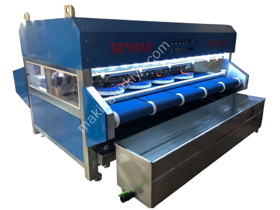 4 Brush Automatic Carpet Washing Machine Developed for professional carpet washing businesses, the SHY 2700/4 Automatic Carpet Washing Machine stands out in the industry with its high capacity and fully automatic features. Providing deep cleaning on large surfaces, this model saves both time and labor. The machine's 4 pieces of 43 cm disc brushes and 2 pieces of 270 cm roller brushes offer cleaning options for different types of carpets. The pneumatic pressure system of the brushes ensures effective cleaning by applying even and controlled pressure to the carpet surface. The PLC controlled automation system enables precise and systematic management of all washing processes. Operating with a 7 kW motor power, this system provides a daily carpet washing capacity of up to 700 m². The belt speed is adjustable, allowing flexible use for carpets of different thicknesses and lengths. With a maximum carpet width of 2700 mm, this machine is ideal for large carpets. The hot-dip galvanized chassis offers long-lasting durability against corrosion, while integrated components such as water pump, detergent pump, 200-liter detergent tank, and moistening pool enhance washing efficiency. Additionally, a carpet carrying trolley is provided as standard for easy transport of carpets. SHY 2700/4 is the top choice for all businesses in the carpet washing sector that aim to offer quality, fast, and economical solutions with its high capacity, strong structure, and automation support. TECHNICAL SPECIFICATIONS SHY 2700/4 Number of Disc Brushes 4 Pieces - 43 cm Number of Roller Brushes 2 Pieces - 270 cm Brush Pressure System Pneumatic Usage Automatic Movement System PLC Controlled Motor Power 7 kW Daily Capacity 700 m² Belt Speed Adjustable Max Carpet Width 2700 mm Machine Chassis Hot-Dip Galvanized Voltage 380V Water Pump Available Detergent Pump Available Detergent Tank 200 Lt Moistening Pool Available Carpet Carrying Trolley Available