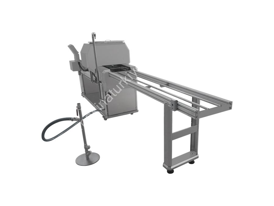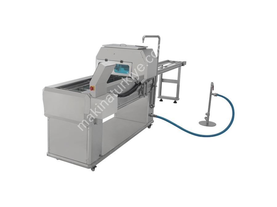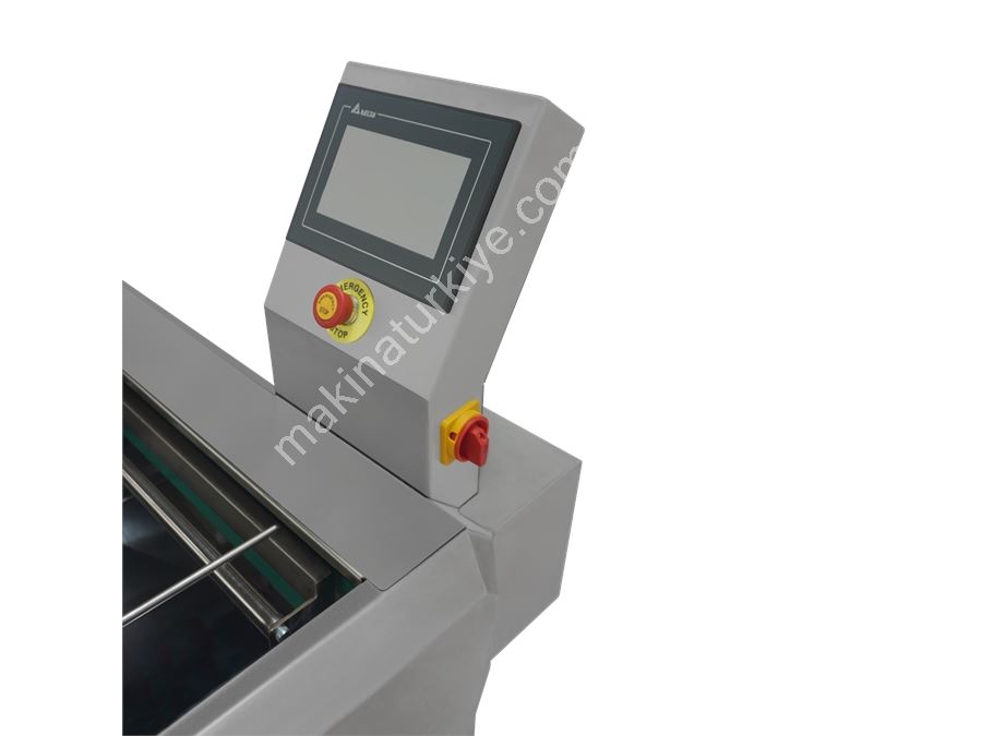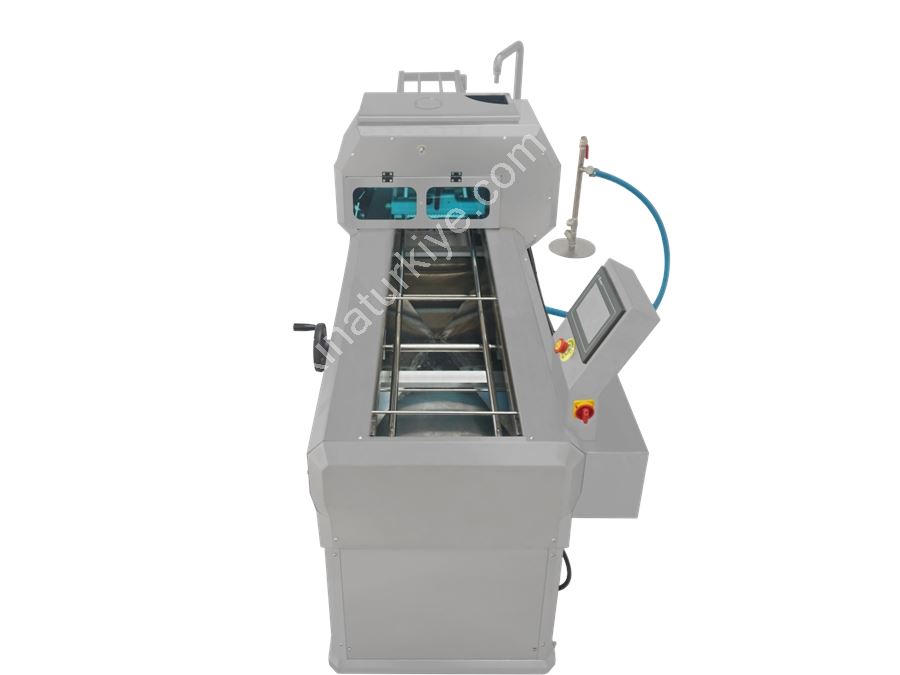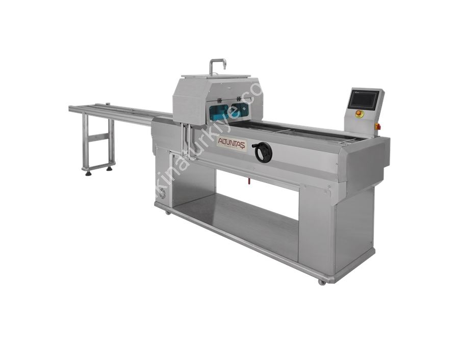 AS-01 Syrup Dispensing Machine Designed for pouring syrup evenly onto baklava trays. Technical Details Length (A): 2,650 mm Height (B): 1,500 mm Width (C): 850 mm Power: 220 V / 4.5 kW Weight: 320 kg Capacity: 500 trays/hour Installation & Assembly 24/7 Technical Support Warranty Service Adjustable Dispensing Amount After adjusting tray dimensions, the syrup is distributed evenly across the entire surface. Up to 500 trays/hour capacity Uniform Dispensing Adjustable by Weight Supports Various Tray Sizes Completes the syruping process of one tray within a few seconds.