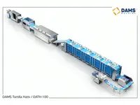 DAMS Roll Bread Making Machine / DREM-11 GENERAL SPECIFICATIONS ? The settings are made easily from the PLC-controlled touch screen. ? Mechanical settings are simple to use and easy to learn. ? Information on usage can be stored in memory and used continuously. ? Daily cleaning is easy. ? It is easy to disassemble, install and replace belts and running parts. ? The speeds of all belts can be adjusted to the desired level. ? Electrical and electronic faults that may occur are displayed on the PLC screen with pic and text. ? In case of malfunction, remote access can be performed with PLC program (Optional) CUTTING SECTION ? Machine body is 304 crom. The contact surfaces of the dough are 304 crom and crom coating. ? Cutting grammage ranges as below; 30 – 110 gr ? Different outer drums are used for dough cutting in these weight ranges. ? Average roll bread dough cutting and rounding capacity is 11.000 in 1 hour. ? Maximum11,000 pieces of hamburgers and pastry dough per hour, the average of ? 7,000 pieces of bagel and sandwich dough. ? Since very little flour is used in the dough section, it provides a clean working environment. ? The amount of flour given to the cut dough can be adjusted. ? The lubrication system is automatically adjusted during the dough cutting process. ? Unlike other machines, it does not wear pulp due to non-pressurized cutting. AUTOMATIC TRAY LOADING MACHINE ? The pan enters the Tray Loading Machine automatically. It exits automatically after laying. ? The spreading distance is adjusted via the screen. ? Automatically sorts the cutten dough into the desired size tray. ? Tray dimensions should be reported in advance. Laying size changes for non-standard tray. ? It makes automatic sorting with simple settings on corrugated and flat trays. ? If the tray is not properly placed, sorting will not take place, it will give a warning on the screen. Note: Since there are pneumatic pistons on the machine, air of minimum 4 bar pressure is required for the operation of the machine. 5 * 2.5 multiple cables must be use for electricity. In order to prevent damage to the automation products used in the machine, a suitable regulator is recommended to prevent voltage fluctuations in electricity TECHNICAL SPECIFICATIONS MACHINE WIDTH 1670 mm VOLTAGE 380 V MACHINE LENGTH 4110 mm CURRENT 25 Amper MACHINE HEIGHT 1840 mm FREQUENCY 50 Hertz MACHINE WEIGHT 2000 kg MAX. POWER 7 kW CAPACITY (Average) 11,000 pcs / h AVERAGE POWER 6 Kw