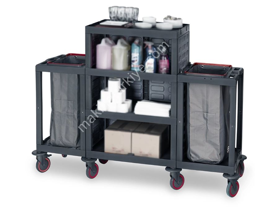 Chariot de Nettoyage en Plastique (53x184x136 cm) Joy Horeca Pro Plus-411 - BP.SPP.0121-K Chariot de Transport en Plastique, conçu spécialement pour le transport de matériel dans les hôtels, restaurants, hôpitaux et services de nettoyage. Ce modèle, avec des dimensions de 53 cm de large, 184 cm de long et 136 cm de haut, permet de transporter des charges volumineuses de manière sécurisée et ordonnée. Grâce à sa conception ergonomique, il offre à la fois une utilisation facile et un gain de temps. Caractéristiques Principales ✔ Haute Durabilité – Matériau plastique robuste pour une utilisation prolongée Informations Techniques Poids : 33,8 Kg Dimensions : 53 x 184 x 136 cm Matériau : Plastique polypropylène (PP) haute densité Capacité de Charge : 150 – 300 Kg Roues : Roues pivotantes à 360°, avec frein et sans traces Options de Couleur : Gris, noir ou couleurs sur demande