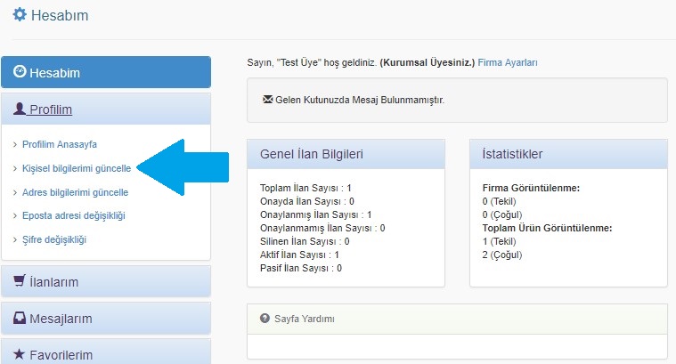 Hesabım sayfasında sol tarafta bulunan Profilim başlığı altında bulunan Kişisel bilgilerimi güncelle kısmından bilgilerinizi güncelleyebilirsiniz.