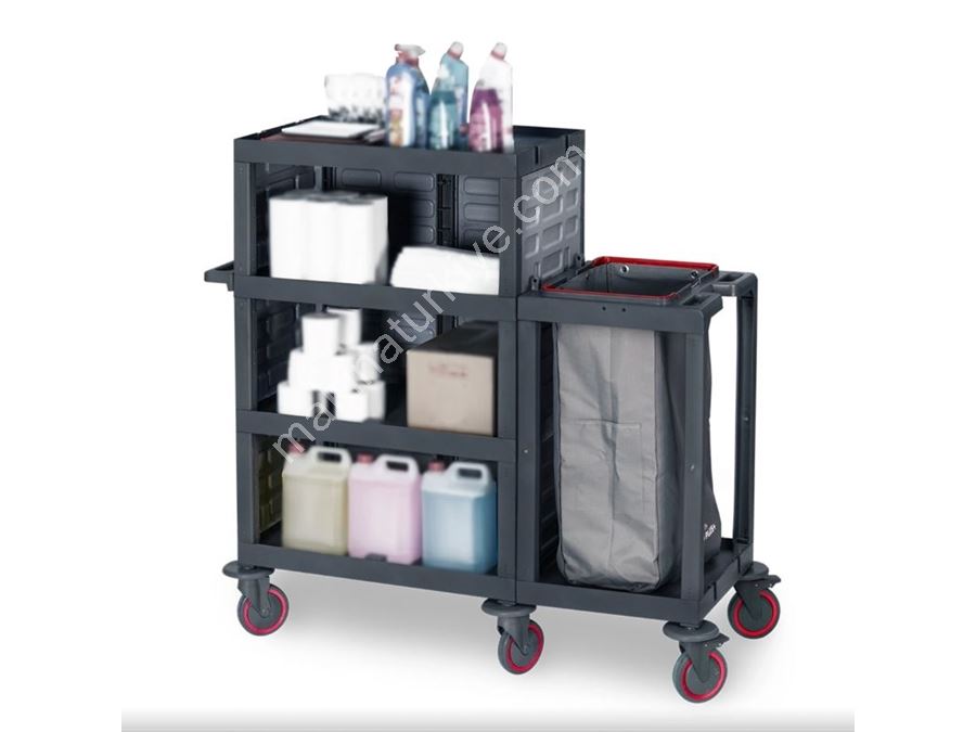 Plastik Temizlik Malzeme Arabası (53x143x136 cm) Joy Horeca Pro Plus 405 - BP.SPP.0132-K Profesyonel temizlik ihtiyaçları için tasarlanan Plastik Temizlik Malzeme Arabası, 53x143x136 cm ölçülerinde ve 27,5 kg ağırlığında dayanıklı bir yapıya sahiptir. Sağlam plastik gövdesi, uzun ömürlü kullanım ve yüksek taşıma kapasitesi sağlar. Ergonomik tasarımı, dar alanlarda kolay hareket imkânı sunarken geniş depolama alanı, temizlik malzemelerini düzenli şekilde taşımanıza yardımcı olur. Oteller, hastaneler, alışveriş merkezleri, ofisler ve endüstriyel tesisler için ideal bir çözümdür. Teknik Özellikler: Ölçüler: 53x143x136 cm Ağırlık: 27,5 Kg Dayanıklı plastik gövde Ergonomik kullanım ve kolay manevra Geniş taşıma kapasitesi Kolay temizlenebilir yapı