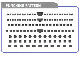 После размещения материалов (бумага, картон и т.д.) различной толщины в бункере машины, они поднимаются с помощью лифта партиями по 1.5-2.0 мм и отправляются на пробивную станцию. Здесь материалы пробиваются с помощью специального аппарата и укладываются на конвейер в форме рыбий кости с сохранением нумерации.