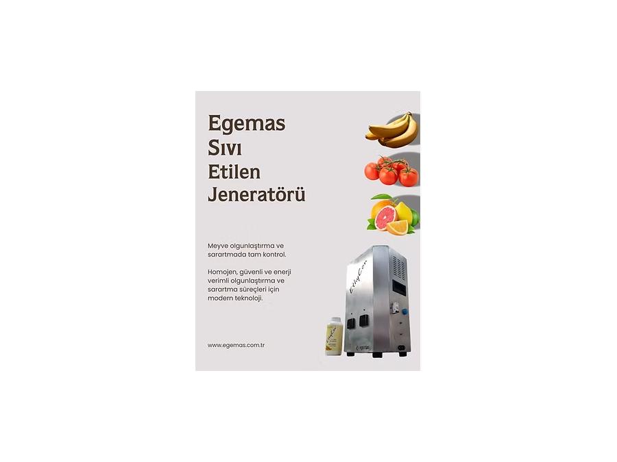 Doğal, Güvenli ve Verimli Olgunlaştırma Çözümü Sıvı Etilen Jeneratörü Nedir? Avantajları Kullanım Alanları Muz olgunlaştırma Domates olgunlaştırma Kivi olgunlaştırma Avokado olgunlaştırma Narenciye ürünleri sarartma Nasıl Çalışır? Model Seçenekleri Ne Zaman Sıvı Sistem Tercih Edilir?Egemas Sıvı Etilen Jeneratörü